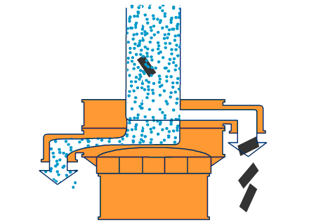 1.體積小、重量輕、移動方便、出料口方向可任意調(diào)整,粗、細(xì)料自動排出,可自動化或人工作業(yè)。